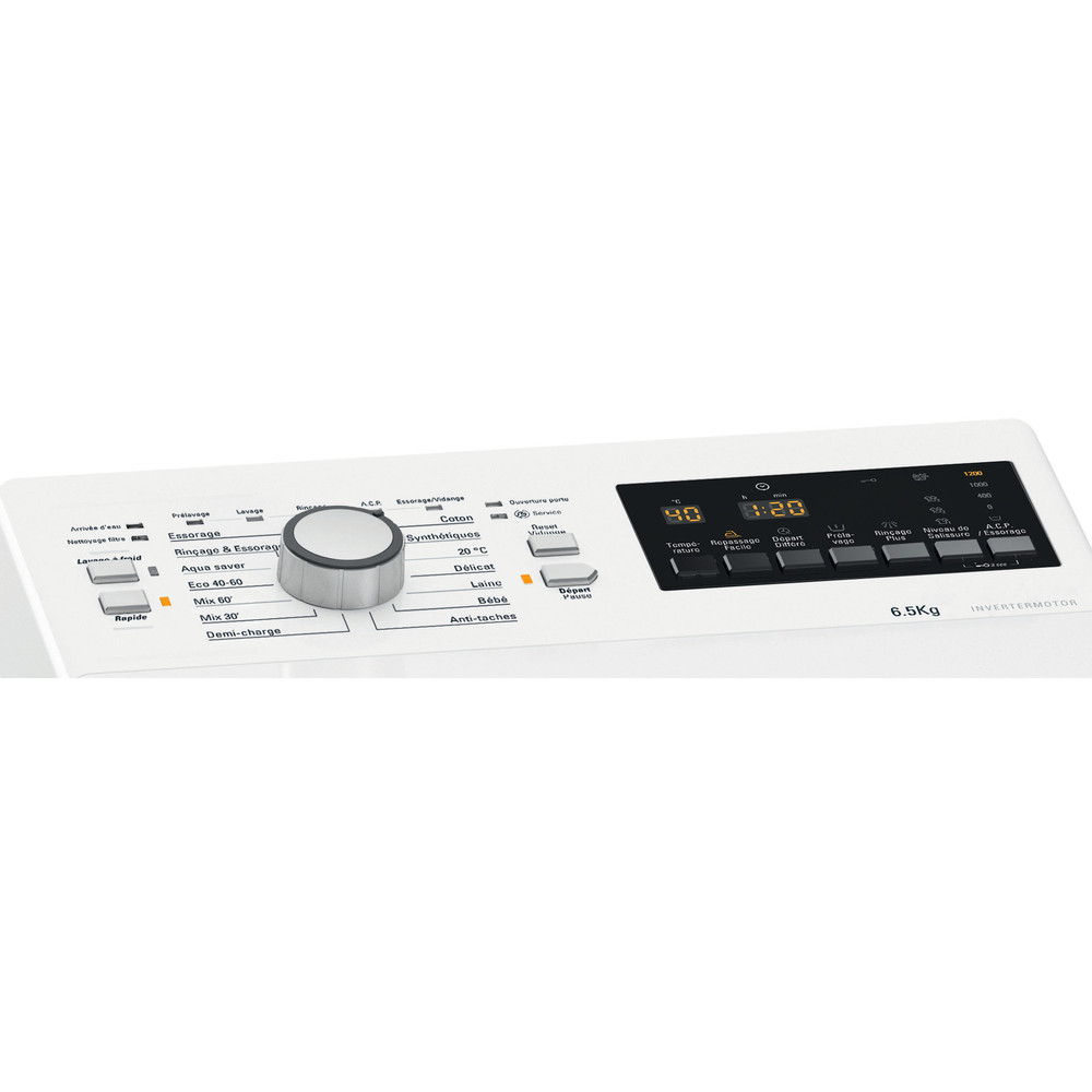 Ce lave-linge ouverture dessus Hotpoint présente les caractéristiques suivantes : notre appareil de faible profondeur est la solution idéale pour les petits espaces. Capacité phénoménale de 6,5 kg. Une vitesse d'essorage rapide de 1200 tours/min. Couleur blanche.