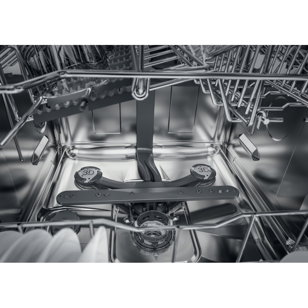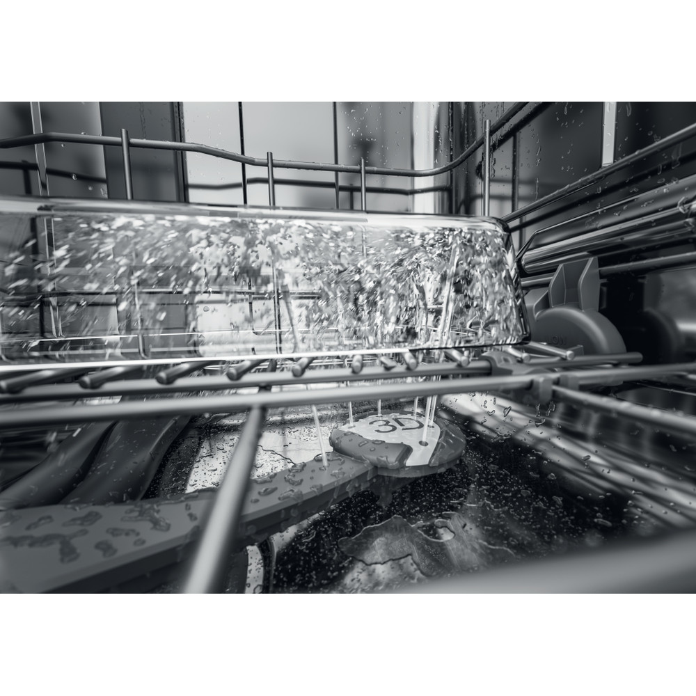 Des jets d'eau jusqu'à 80 %* plus puissants pour des résultats de nettoyage brillants dans le panier inférieur. * Augmentation du pourcentage de la puissance moyenne de l'eau par rapport à l'option 3D Zone Wash désactivée