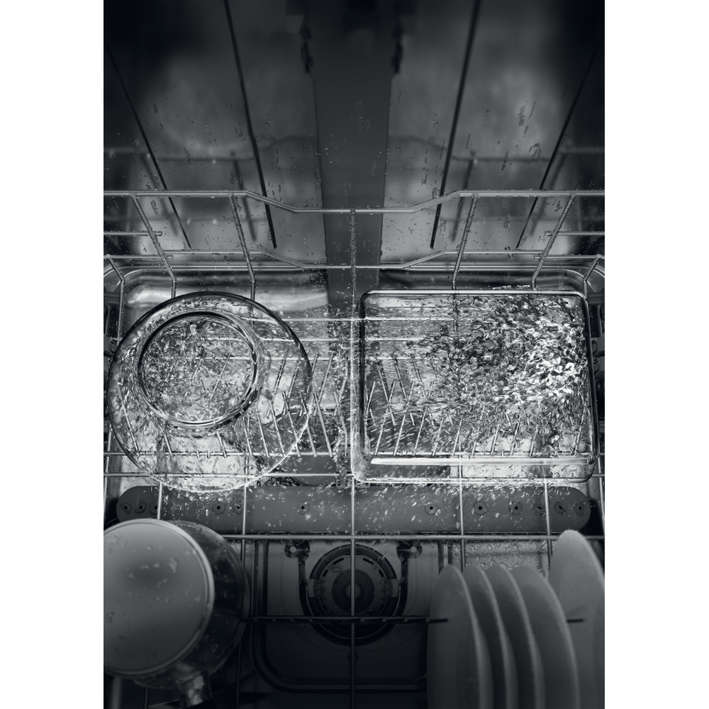 Plus de vaisselle restante dans l'évier ! Une cuve spacieuse qui offre 10% d'espace supplémentaire pour charger votre vaisselle. *Comparaison entre les modèles de lave-vaisselle Hotpoint avec cuve standard et les modèles de lave-vaisselle Hotpoint avec cuve MaxiSpace.