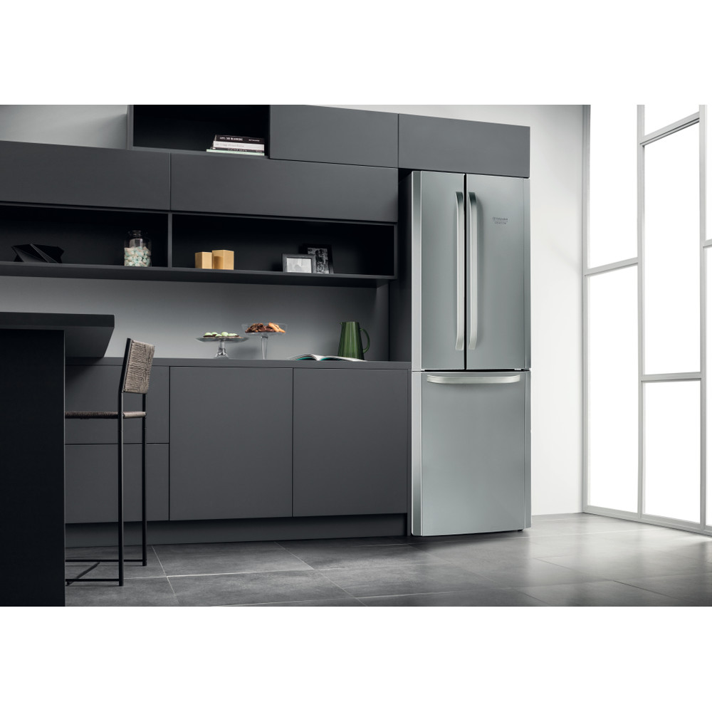 Ce réfrigérateur-congélateur posable Hotpoint présente les caractéristiques suivantes : appareil de grande taille pour répondre aux besoins de toute la famille. Couleur inox. Design inox. Technologie réduisant efficacement le taux d’humidité présent à l’intérieur du congélateur et empêchant ainsi la formation de givre. Étagères robustes et élégantes pour y placer vos aliments en toute sécurité.